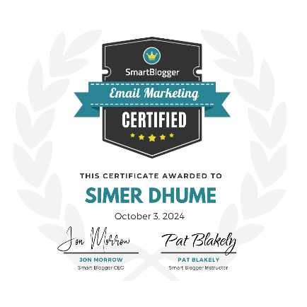 At Simer Dhume Digital, we master the art of strategic copy that slices through the clutter. We use words to visually tell your brand's unique story, making it memorable.